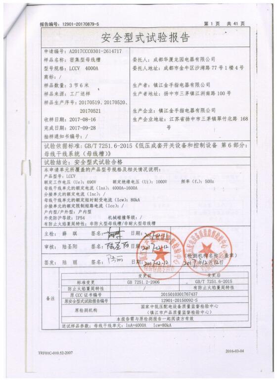 LCCV 密集型母線槽(1600A)試驗(yàn)報(bào)告
